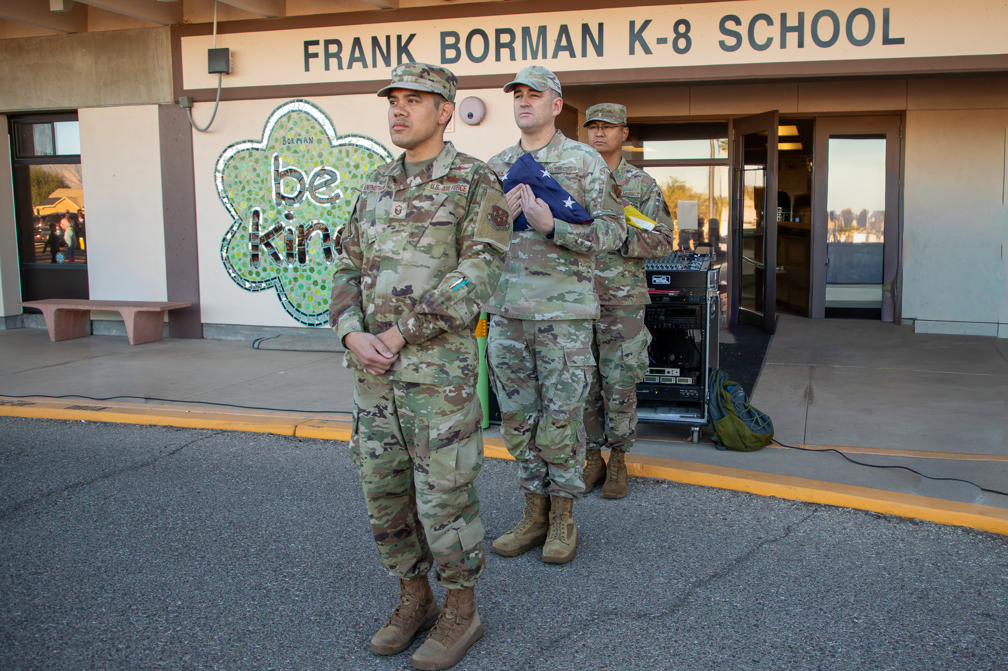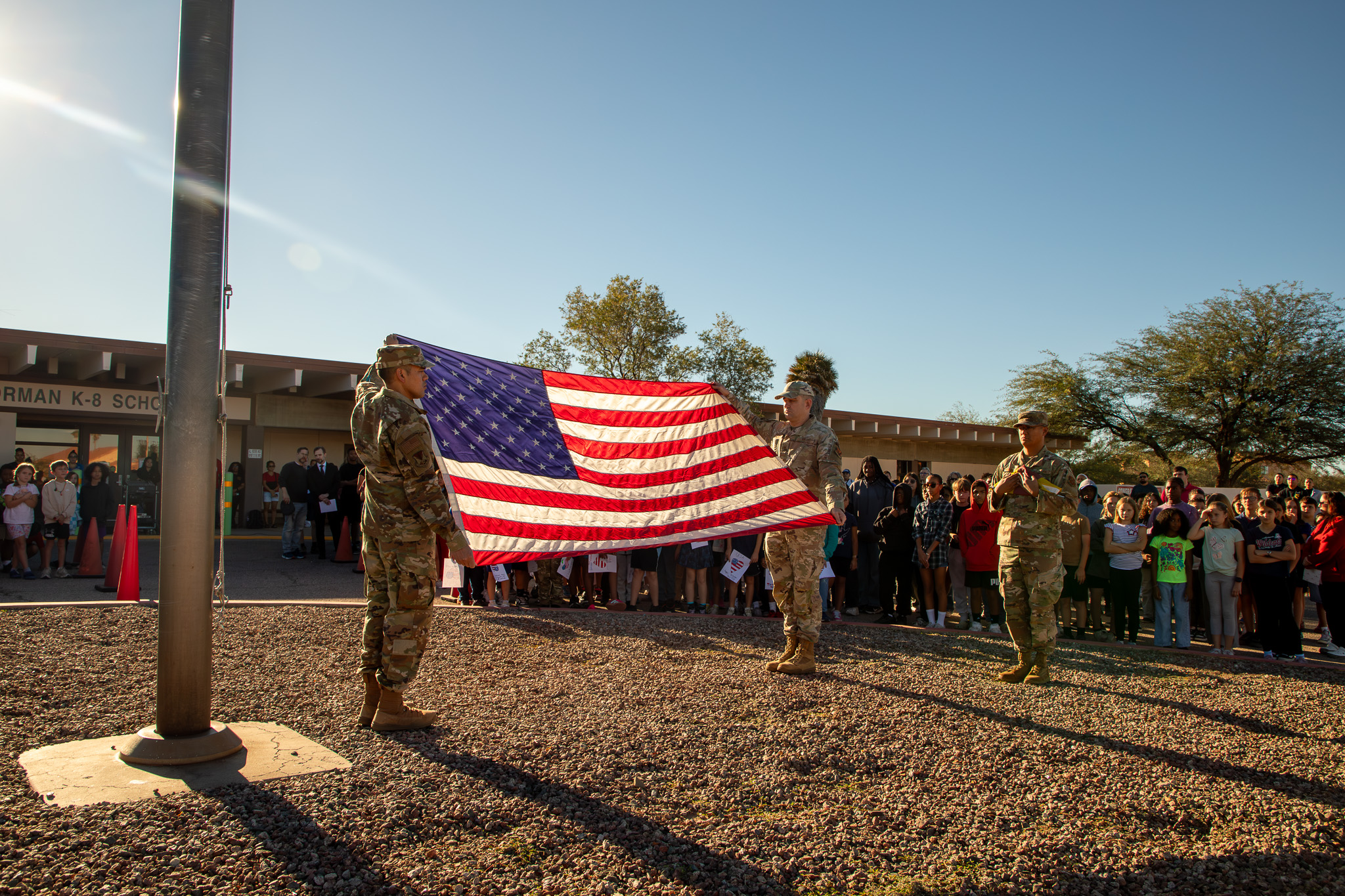 Borman hosted our annual flag-raising ceremony in honor of Veterans Day. Family, active-duty members, veterans, and people from the community gathered to watch the Davis-Monthan Color Guard perform this special ceremony and enjoyed performances by students.